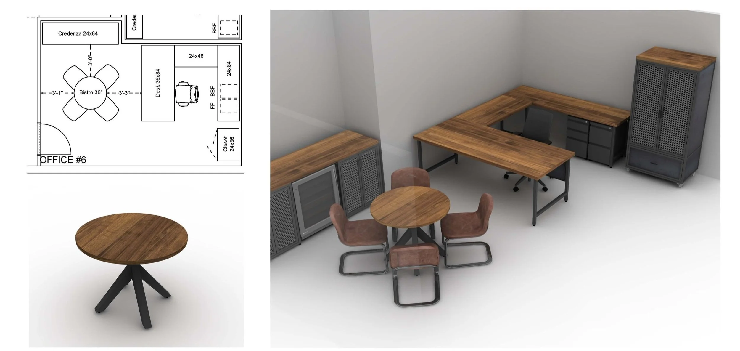 imagery packets include furniture layouts and 3D renderings created using CET, AutoCAD, and Adobe Photoshop